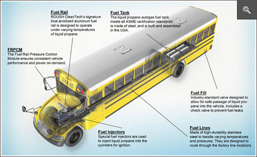 If you saw a propane bus on the street, you probably wouldn’t know that it was any different from a diesel bus, except that you wouldn’t see any black exhaust and you would notice that it was much quieter. School bus drivers, when they get their hands on the wheels of a propane bus, never want to let it go.
